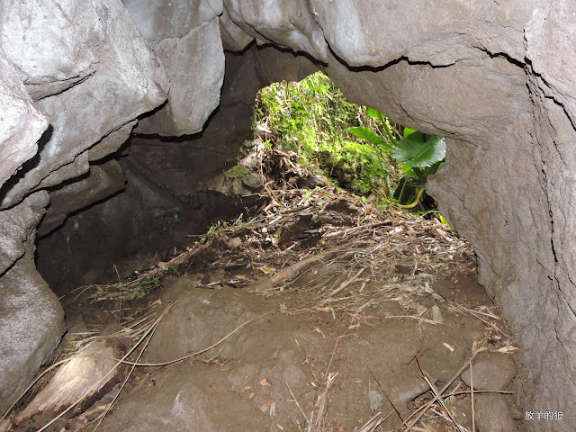隔週再次做好準備,決定找個適當的點下切至溪谷,採直接溯溪方式尋找,果然這個方式是正確的,但也吃足苦頭,溪床落差甚大,倒樹枯枝堆積,寸步難行,但總算皇天不負苦心人,先是在峭壁旁發現一處小型的金鑛坑,最終在溪流的源頭,找到主要的坑口。